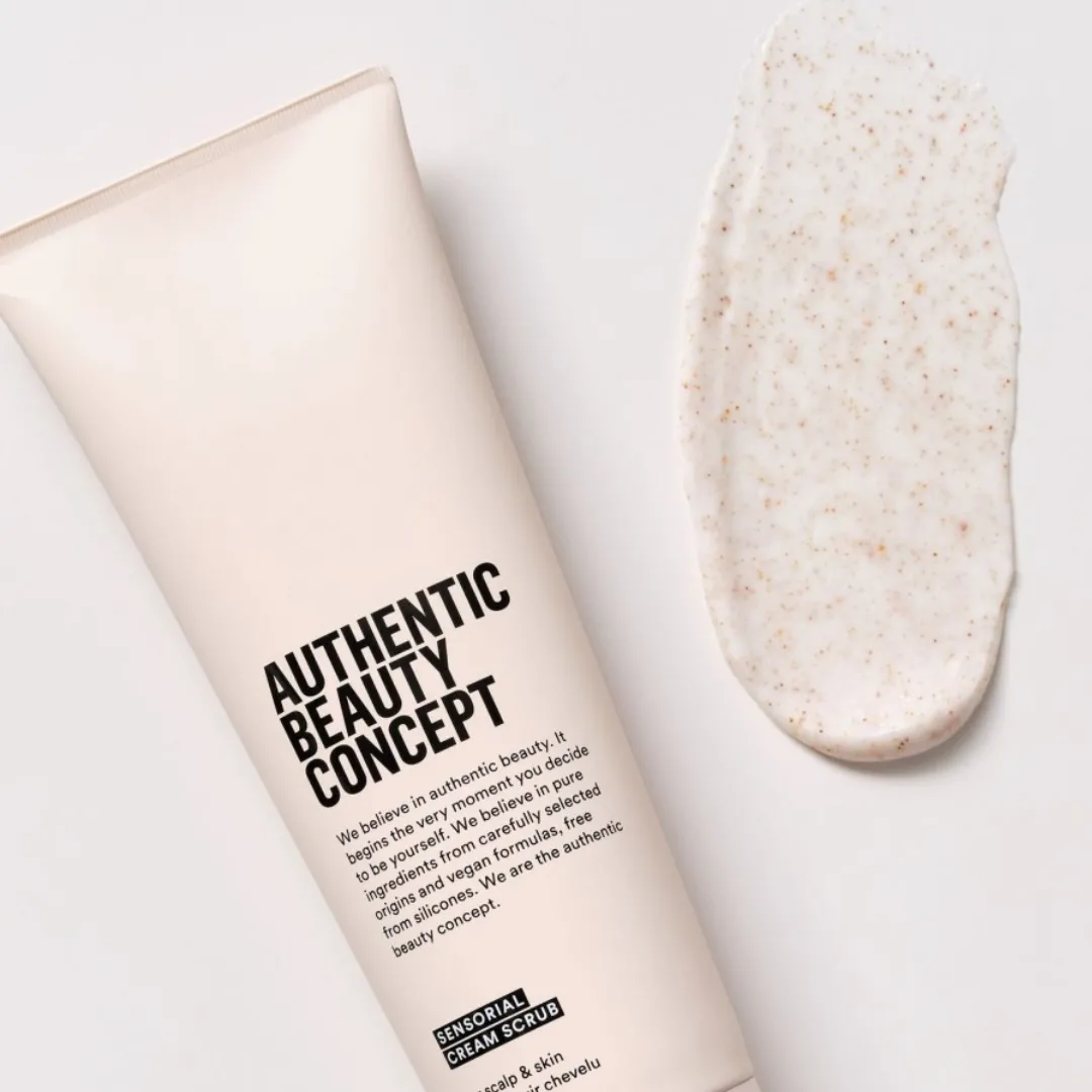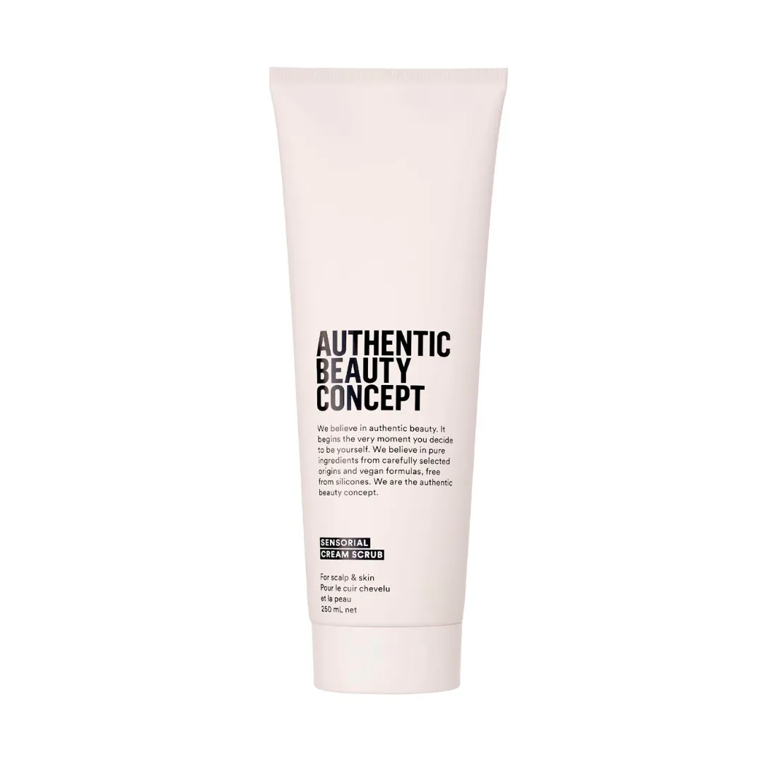 Exfoliante Sensorial en Crema para Cuero Cabelludo y Piel Authentic Beauty Concept, exfoliante enriquecido con semillas de chía, nuez y albaricoque que trabaja como un detox para el cuero cabelludo, cuerpo y rostro dejándolos profundamente limpios e hidratados, a su vez proporciona una sensación de limpieza, de suavidad y refrescante en el cuero cabelludo, cuerpo y rostro.